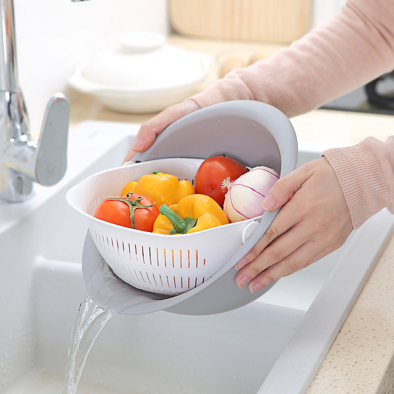 新しい多機能収納バスケットプラスチックポータブルラウンドダブルドレインバスケットフルーツバスケット野菜バスケット