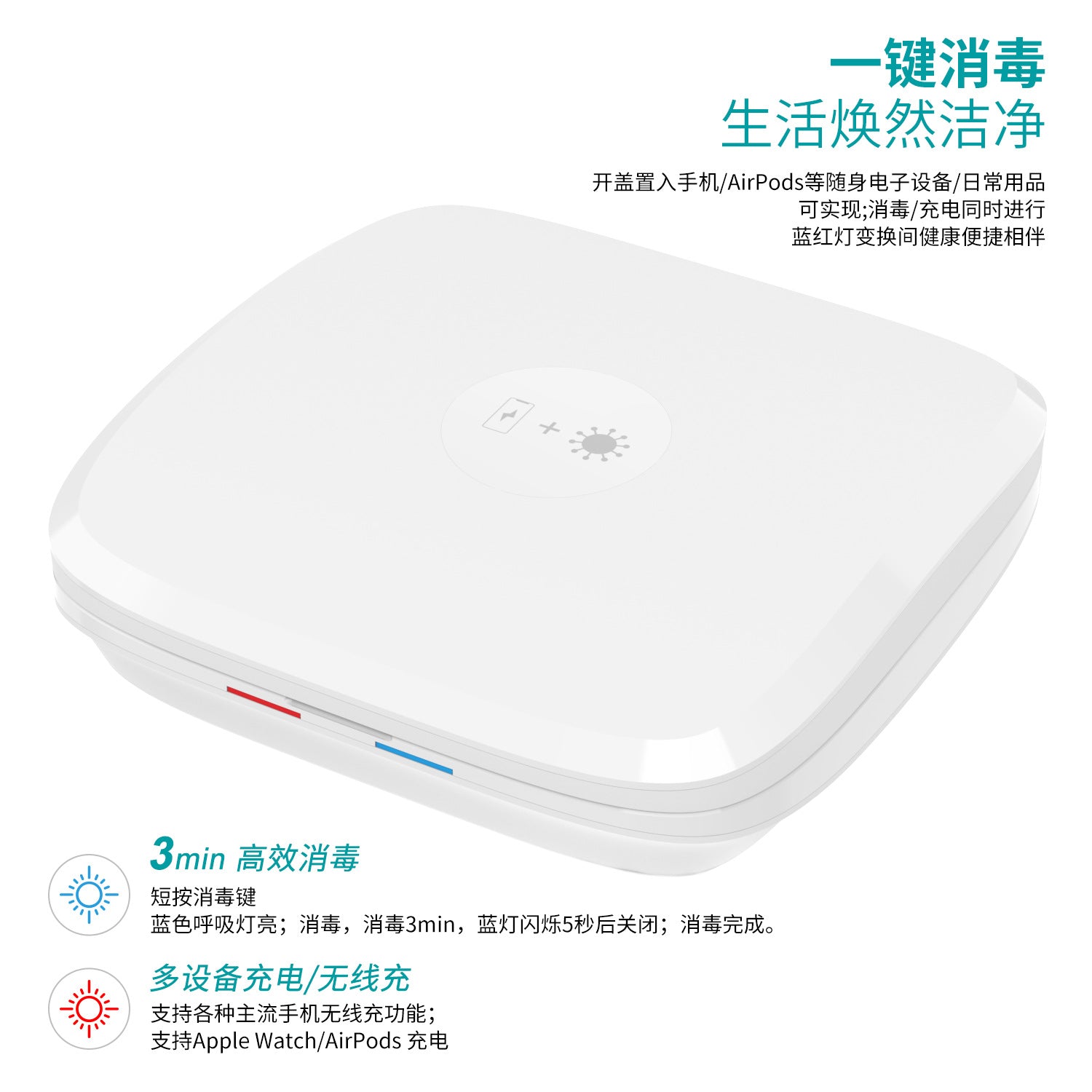 Apple AirPodspro Bluetoothヘッドセット、携帯電話時計のワイヤレス充電用4イン1 UV消毒ボックス