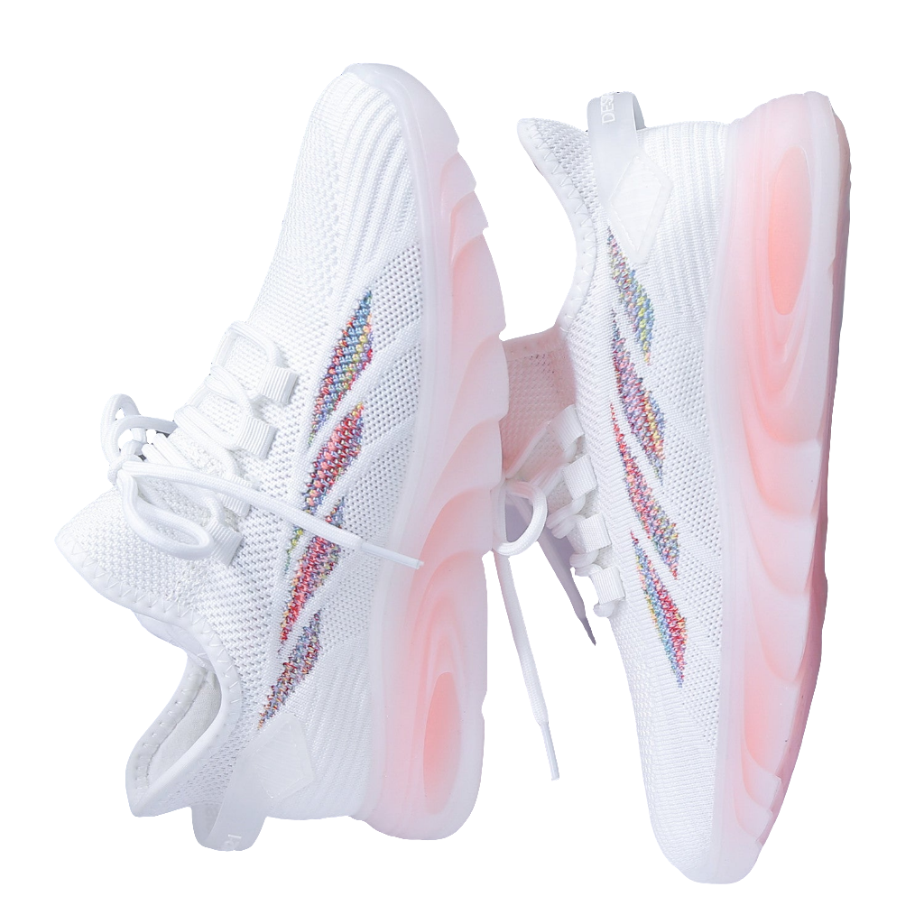 通気性のあるデザイン: ピンクのメッシュ素材のアッパーが足の通気性を最大限に確保します。