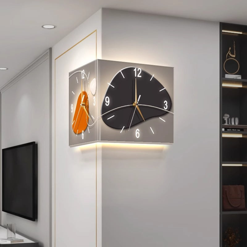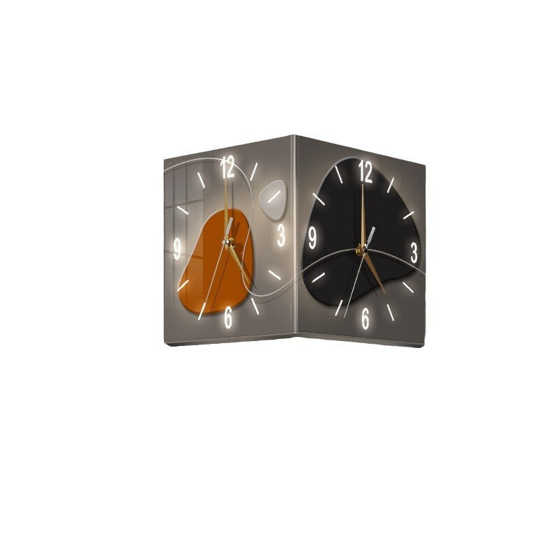 壁掛け時計リビングルーム2024新しいクリエイティブ時計壁ランプパンチフリーコーナークロックコーナークロックネットセレブ両面時計