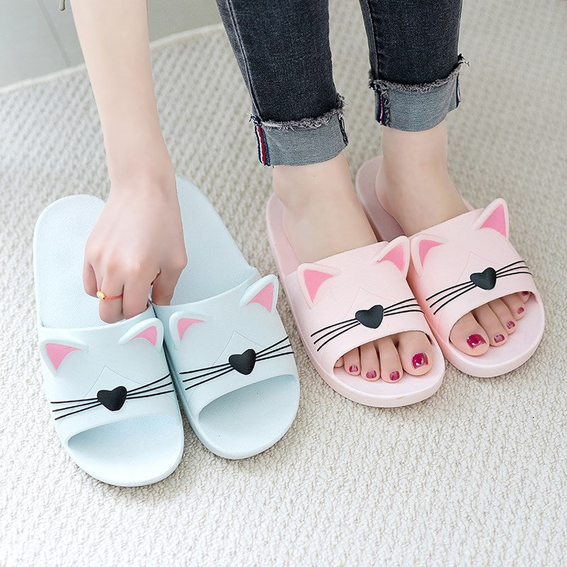 レディーススリッパ かわいい漫画猫 室内浴室動物スリッパ カップルスライド デザイナーフリップフロップ ソフトシューズ
